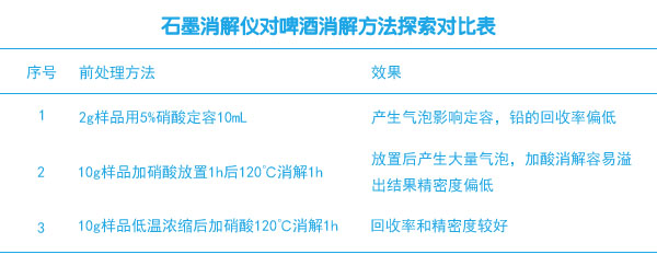 目前,國家衛(wèi)生標準規(guī)定啤酒中鉛的限量為0.5mg/L。國外對啤酒中鉛的分析報道較多,而國內(nèi)有關啤酒中鉛的測定的研究不多。下面文章中使用智能石墨消解儀對啤酒中鉛元素的分析進行前處理消解,對啤酒的研究提供信息幫助。