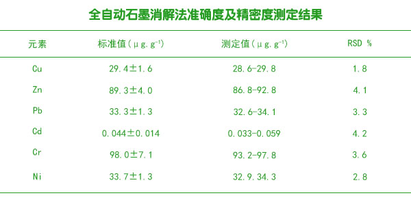全自動(dòng)石墨消解法準(zhǔn)確度及精密度測(cè)定結(jié)果