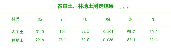 實(shí)際樣品農(nóng)田土、林地土測(cè)定結(jié)果