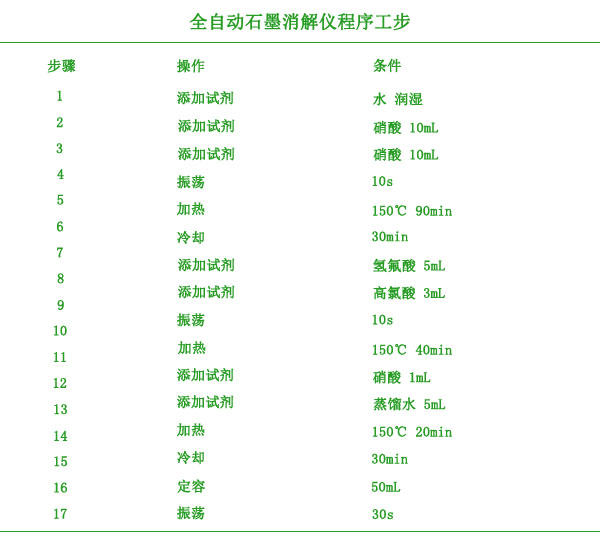 全自動(dòng)石墨消解儀程序工步