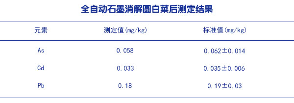 全自動消解儀對圓白菜的消解測定砷、鉛、鎘元素