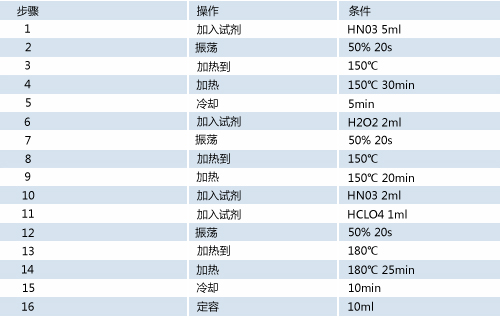 濃硝酸(MERK優(yōu)級純)、雙氧水(GR)和高氯酸(GR);銅、鎘、鉻、鋅4種重金屬元素標(biāo)準(zhǔn)溶液 (100mg/L)。