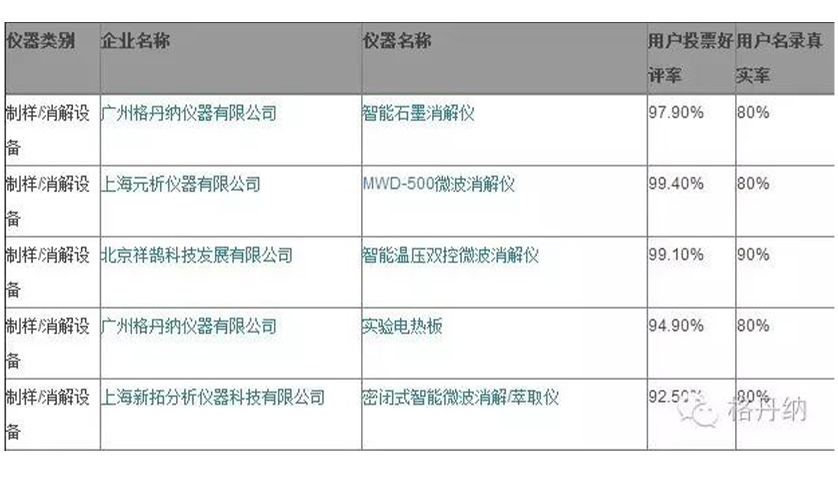 格丹納參加了2016年由中國儀器儀表行業(yè)協(xié)會指導(dǎo)、儀器信息網(wǎng)主辦的第二屆“國產(chǎn)好儀器”活動,在活動中憑借廣大用戶的愛戴與支持在一百多家企業(yè)中參報的國產(chǎn)樣品前處理設(shè)備項目:制樣/消解設(shè)備中以DS-360石墨消解儀、HT實驗電熱板兩款儀器成功入圍評選。